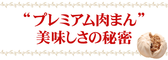 プレミアム肉まんは、餡から生地まで厳選した国産素材を使用しています。餡には鹿児島産さつま六穀豚、宮城産フカヒレ、北海道産干し貝柱、九州産筍、そして熊本産椎茸をこだわって使用しました。生地は北海道産小麦粉に天然酵母を使ってじっくりと熟成させた生地種を加え、風味豊かでもっちりとした弾力のある食感に仕上げました。熟練した職人が生地の微妙な発酵具合を見極めて愛情を込めて手包みしています。