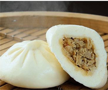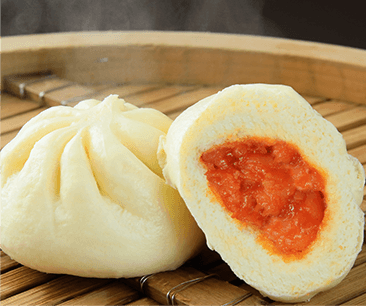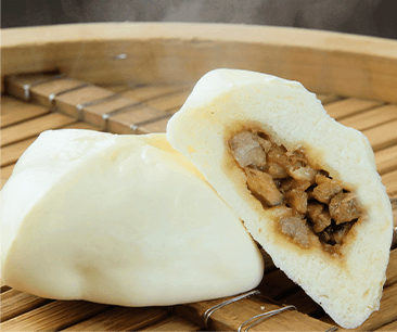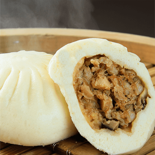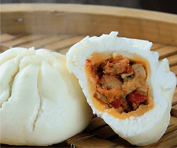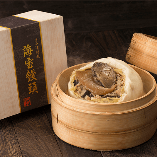 国産の豚肉に、フカヒレ、カニなどを入れた 贅沢な具材が詰まったお饅頭です。生地は独自の配合でブレンドし、じっくりと発酵させたキメ細やかな皮に仕上げています。
