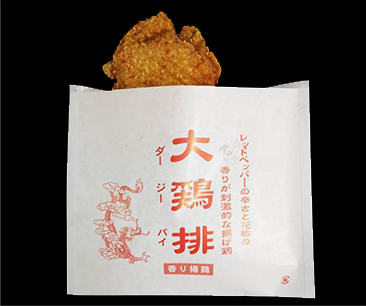 台湾夜市で大人気の大鶏排(ダージーパイ)を食べやすいサイズにしました。鶏モモ肉を花椒と唐辛子で風味付けした衣をまぶして揚げました。サクッとした食感、ピリッとした辛さがたまらない、食べ歩きにぴったりな一品です。