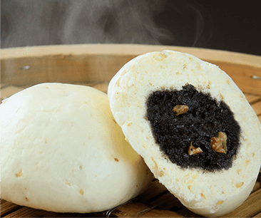 たっぷりの黒ゴマと小豆に、 豚の腹脂を練り込んで炊き上げた餡は、柑橘系の香りとクルミが加わり、飽きのこない甘さとなっています。