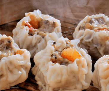 豚肉、海老、しいたけに世界三大ハムの金華ハムを加え、風味豊かに仕上げた当店ならではの贅沢なシウマイです。